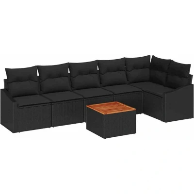 ManoManoGeneral description This handy patio set is designed for modern outdoor spaces, perfect for those who appreciate style and functionality in their garden or terrace. Its modular design allows for various configurations, making it suitable for both cozy and larger areas. With sleek lines and a minimalist aesthetic, it offers a contemporary feel while the durable materials ensure it withstands seasonal changes. Ideal for summer gatherings or relaxing in spring, this set combines flair with practicality. Technical specifications Colour: Black Material: PE rattan, powder-coated steel, and solid acacia wood Modular design Adjustable feet for uneven surfaces UV-resistant materials Assembly required: Yes EAN: 8721288367822 SKU: 3356511 Compatibility and accessories Delivery includes: 3 x Centre seats with storage function and waterproof bags 1 x Corner seat with storage function and waterproof bag 2 x Arm sofas with storage function and waterproof bags 1 x Garden table Usage Perfect for