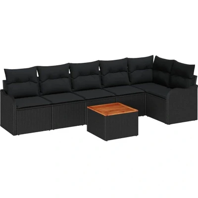 vidaXL Garden Sofa Set 7 pcs Black Poly rattan