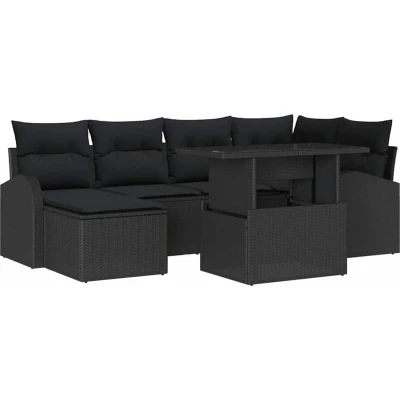 vidaXL Garden Sofa Set 7 pcs Black Poly rattan and powder coated steel