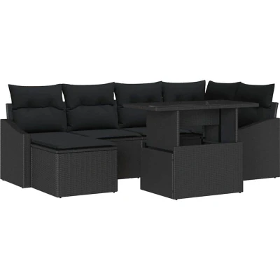 vidaXL Garden Sofa Set 7 pcs Black Poly rattan and powder coated steel