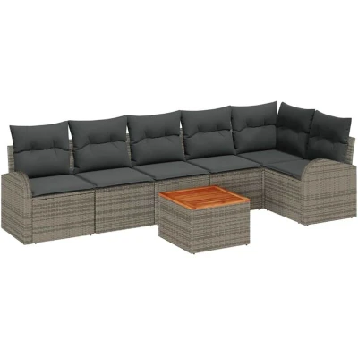 vidaXL Garden Sofa Set 7 pcs Grey Poly rattan