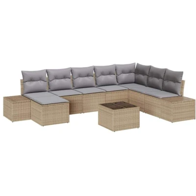 vidaXL Garden Sofa Set 8 pcs Beige and Light grey Poly Rattan