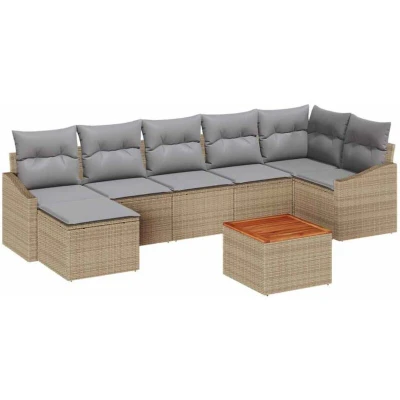 vidaXL Garden Sofa Set 8 pcs Beige and Light Grey Poly Rattan