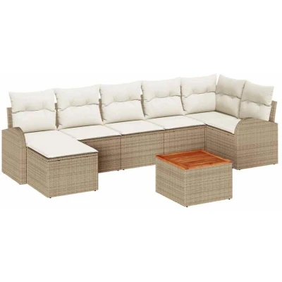 ManoManoGeneral description Give your garden a boost with this cool and modern patio lounge set. It’s all about style and practicality, packed into a cute compact design. Built for outdoors, it’s great for folks who care about looks and usefulness. The blend of solid acacia wood and poly rattan gives it a fab visual flair that fits in with any outdoor space. Whether you're throwing a party or just kicking back solo, this set creates a comfy vibe that everyone will love. Technical specifications Colour: Beige and white Material: PE rattan, powder-coated steel, and solid acacia wood Assembly required: Yes EAN: 8721288365507 SKU: 3356279 Included Components 3 x Centre seat including storage function with a water-resistant bag 1 x Corner seat including storage function with a water-resistant bag 2 x Armsofa including storage function with a water-resistant bag 1 x Footstool with storage function 1 x Garden table Features / Function / Design Modular setup for flexible arrangement Adjustable feet