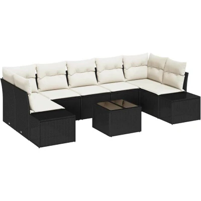 vidaXL Garden Sofa Set 8 pcs Black Poly rattan