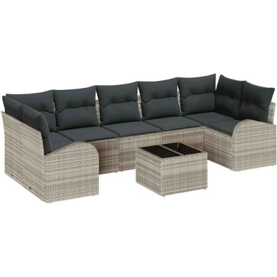 Vidaxl Garden Sofa Set 8 pcs Light grey 55 x 37 cm Poly Rattan
