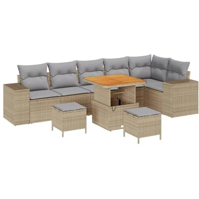 vidaXL Garden Sofa Set 9 pcs Beige and Light Grey Poly Rattan