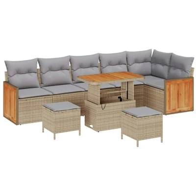 vidaXL Garden Sofa Set 9 pcs Beige and Light grey Poly Rattan