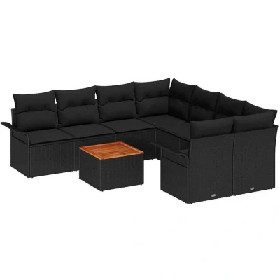 vidaXL Garden Sofa Set 9 pcs Black Poly rattan