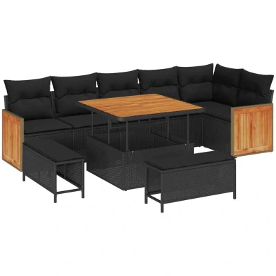 vidaXL Garden Sofa Set 9 pcs Black Poly rattan and powder coated steel