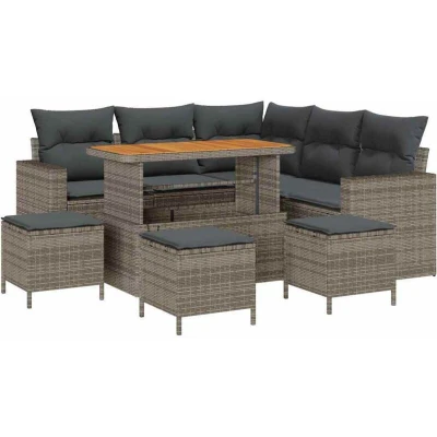 vidaXL Garden Sofa Set 9 pcs Grey Poly rattan and powder coated steel
