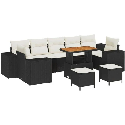 vidaXL Garden Sofa Set Height Adjustable 10 pcs Black Poly Rattan