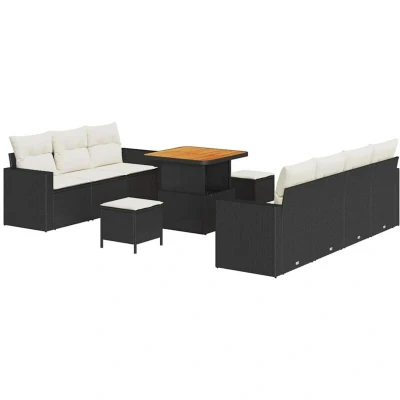 Vidaxl Garden Sofa Set Height Adjustable 10 pcs Black Poly Rattan