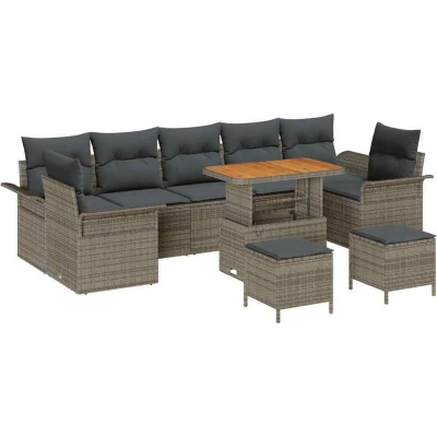 Vidaxl Garden Sofa Set Height Adjustable 10 pcs Grey Poly Rattan