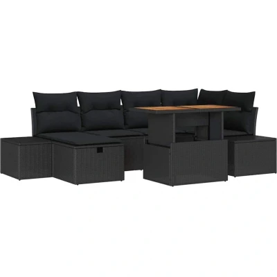 vidaXL Garden Sofa Set Height Adjustable 7 pcs Black Poly Rattan