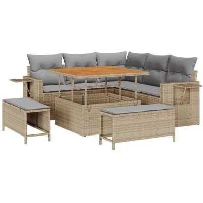 Vidaxl Garden Sofa Set Height Adjustable 8 pcs Beige Poly Rattan