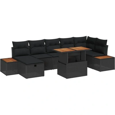 vidaXL Garden Sofa Set Height Adjustable 8 pcs Black Poly Rattan