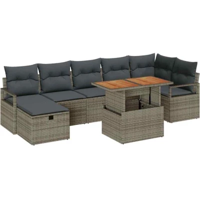 vidaXL Garden Sofa Set Height Adjustable 8 pcs Grey Poly Rattan