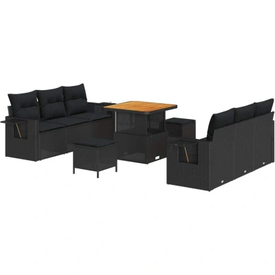 Vidaxl Garden Sofa Set Height Adjustable 9 pcs Black Poly Rattan
