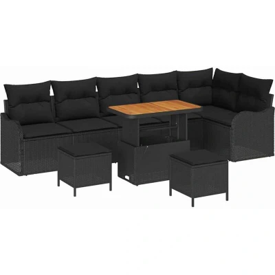 vidaXL Garden Sofa Set Height Adjustable 9 pcs Black Poly Rattan