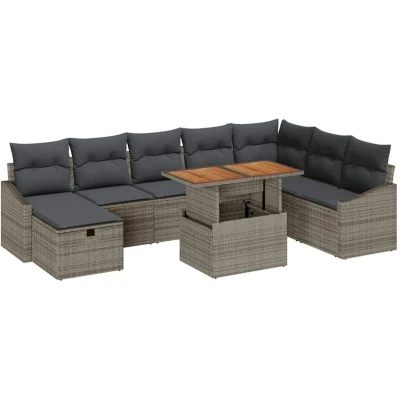 vidaXL Garden Sofa Set Height Adjustable 9 pcs Grey Poly Rattan
