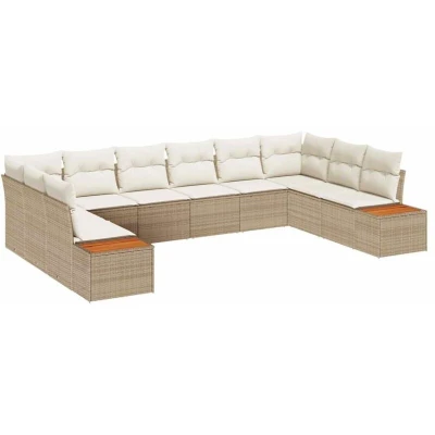 vidaXL Garden Sofa Set with Cushion 10 pcs Beige and cream Poly rattan