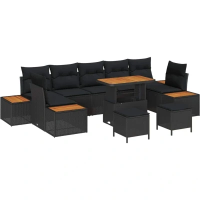 Vidaxl Garden Sofa Set with Cushion 10 pcs Black 90 x 55 71 cm