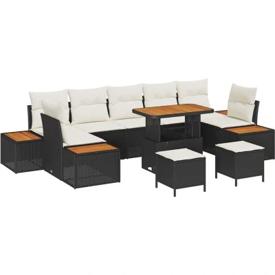 Vidaxl Garden Sofa Set with Cushion 10 pcs Black Poly rattan