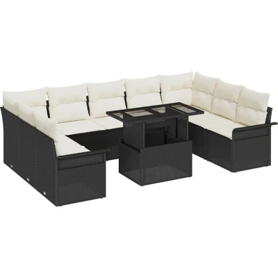 vidaXL Garden Sofa Set with Cushion 10 pcs Black Poly rattan