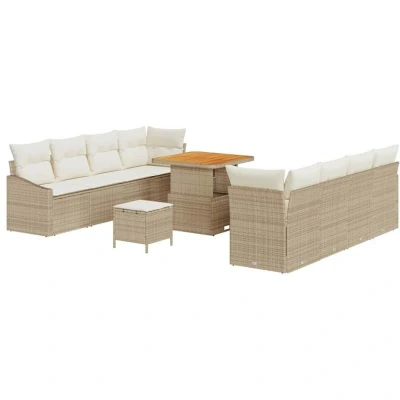 vidaXL Garden Sofa Set with Cushion 11 pcs Beige Poly rattan