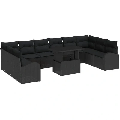 Vidaxl Garden Sofa Set with Cushion 11 pcs Black 100 x 55 73 cm