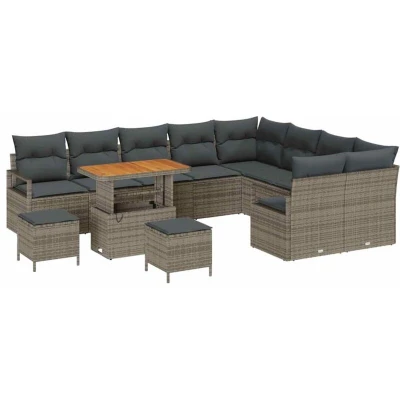 vidaXL Garden Sofa Set with Cushion 12 pcs Grey Poly rattan
