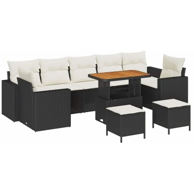 The Modular Garden Sofa Set offers a modern blend of functionality and style for your outdoor spaces. Its adaptable design allows for versatile configurations, catering to various garden and terrace layouts. This set, adorned with clean lines and minimal ornamentation, exudes elegance that complements any modern outdoor setting. Quality Materials: Crafted with a combination of poly rattan and solid acacia wood. These materials ensure durability, stability, and resistance to elements. The aesthetic blend of crisp poly rattan against the natural wood grains adds to its visual appeal while offering robust support. Components for Comfort: Includes outdoor cushions with a weather-resistant fabric, perfect for extended use in the garden. The cushion covers are removable and washable, ensuring ease of maintenance. With spacious seating, the set ensures optimal comfort for family gatherings and social events. Feature Packed Style: The sofa set spotlights modular features, allowing each module to be rearranged effortlessly to fit every occasion. Each piece is lightweight, making it easy to move and reconfigure as desired without losing its sturdy stance. Versatile Usage: Ideal for garden and terrace environments, this sofa set caters to various outdoor activities, from relaxed lounging to hosting summer parties. The simple yet sophisticated style blends effortlessly into any garden design, offering both leisure and aesthetic enhancement. Care Instructions: For longevity, use a protective cover when the furniture is not in use. This helps maintain its pristine condition and shields it from harmful UV rays and weather variations, ensuring years of use without losing its beauty.