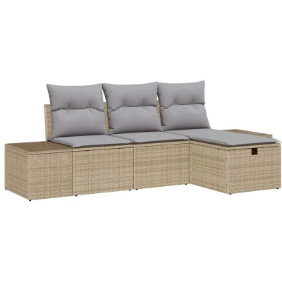 vidaXL Garden Sofa Set with Cushion 4 pcs Beige Poly rattan