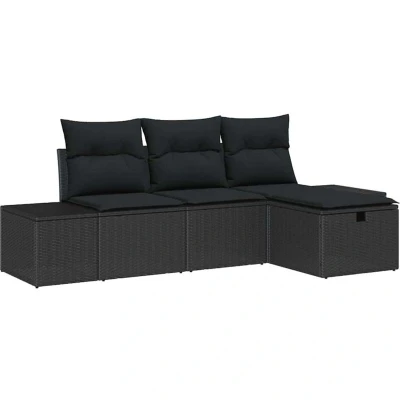 vidaXL Garden Sofa Set with Cushion 4 pcs Black Poly rattan