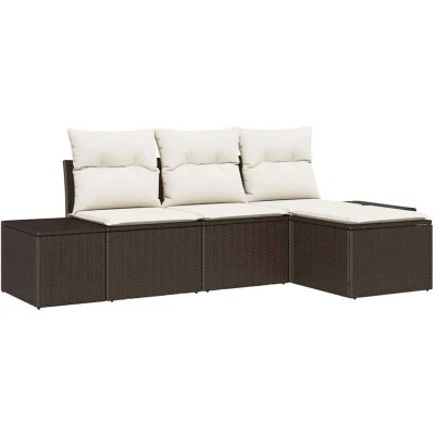 vidaXL Garden Sofa Set with Cushion 4 pcs Brown Poly Rattan