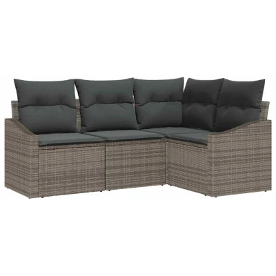 vidaXL Garden Sofa Set with Cushion 4 pcs Grey Poly Rattan