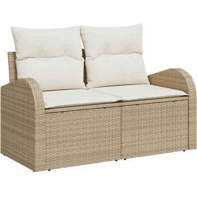 ManoManoGeneral description The Poly Rattan Garden Sofa Set is a stylish and modern addition to any outdoor space. With its clean lines and flexible design, it serves as a perfect spot for relaxation or as an elegant centerpiece for entertaining. Its contemporary vibe enhances gardens and terraces, making it an attractive feature year-round. The UV-resistant materials ensure durability and maintain its appealing look, regardless of the weather. Technical specifications Colour: Beige and cream Material: Poly rattan, steel, and glass Overall dimensions: 55 x 55 x 37 cm (L x W x H) Weight: 32.2 kg Seating area: 110 x 55 cm (W x D) Frame material: Powder-coated steel Filling material: Foam Indoor / outdoor: Outdoor only Number of items: 5 Assembly required: Yes EAN: 8721288348517 SKU: 3354580 What’s Included 2 x Centre seats 2 x Arm sofas 1 x Table Installation Assembly required: Yes Usage Ideal for gardens and terraces, perfect for relaxing or entertaining. Great for enjoying coffee in the