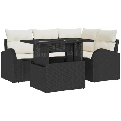 vidaXL Garden Sofa Set with Cushion 5 pcs Black Poly rattan