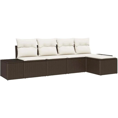 vidaXL Garden Sofa Set with Cushion 5 pcs Brown and Cream Poly Rattan