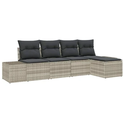 vidaXL Garden Sofa Set with Cushion 5 pcs Light Grey Poly Rattan