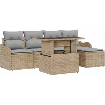 Vidaxl Garden Sofa Set with Cushion 6 pcs Beige Poly rattan