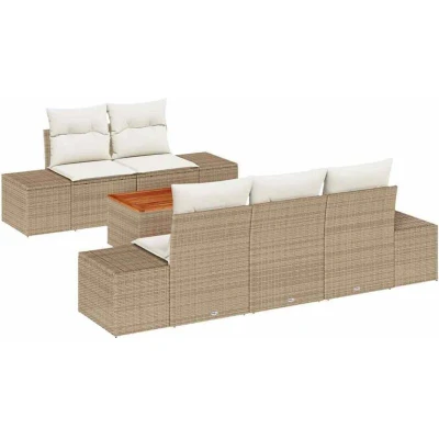 vidaXL Garden Sofa Set with Cushion 6 pcs Beige Poly Rattan