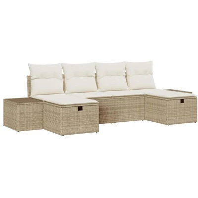vidaXL Garden Sofa Set with Cushion 6 pcs Beige Poly Rattan