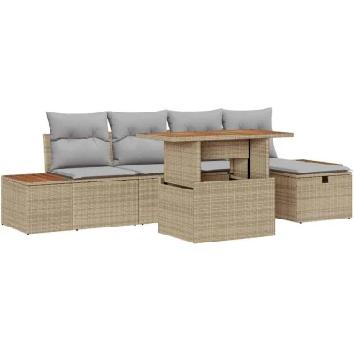 vidaXL Garden Sofa Set with Cushion 6 pcs Beige Poly rattan