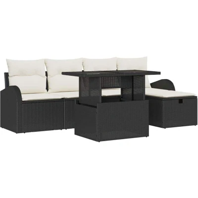 vidaXL Garden Sofa Set with Cushion 6 pcs Black Poly rattan