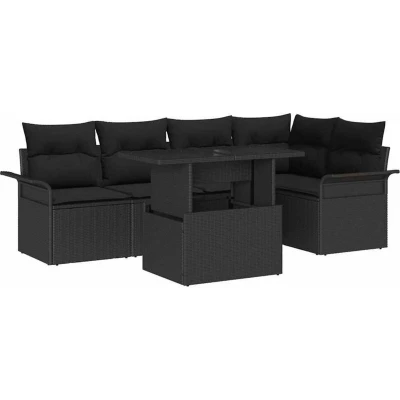vidaXL Garden Sofa Set with Cushion 6 pcs Black Poly Rattan