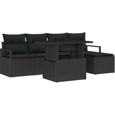 vidaXL Garden Sofa Set with Cushion 6 pcs Black Poly Rattan