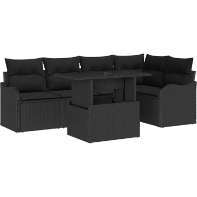 vidaXL Garden Sofa Set with Cushion 6 pcs Black Poly rattan