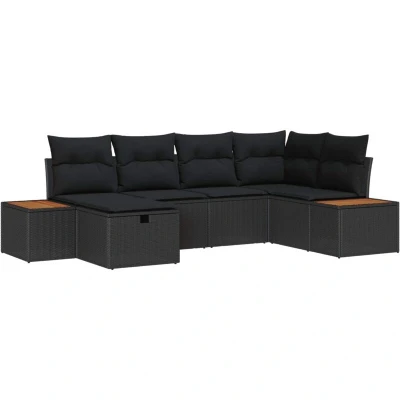 vidaXL Garden Sofa Set with Cushion 6 pcs Black Poly Rattan